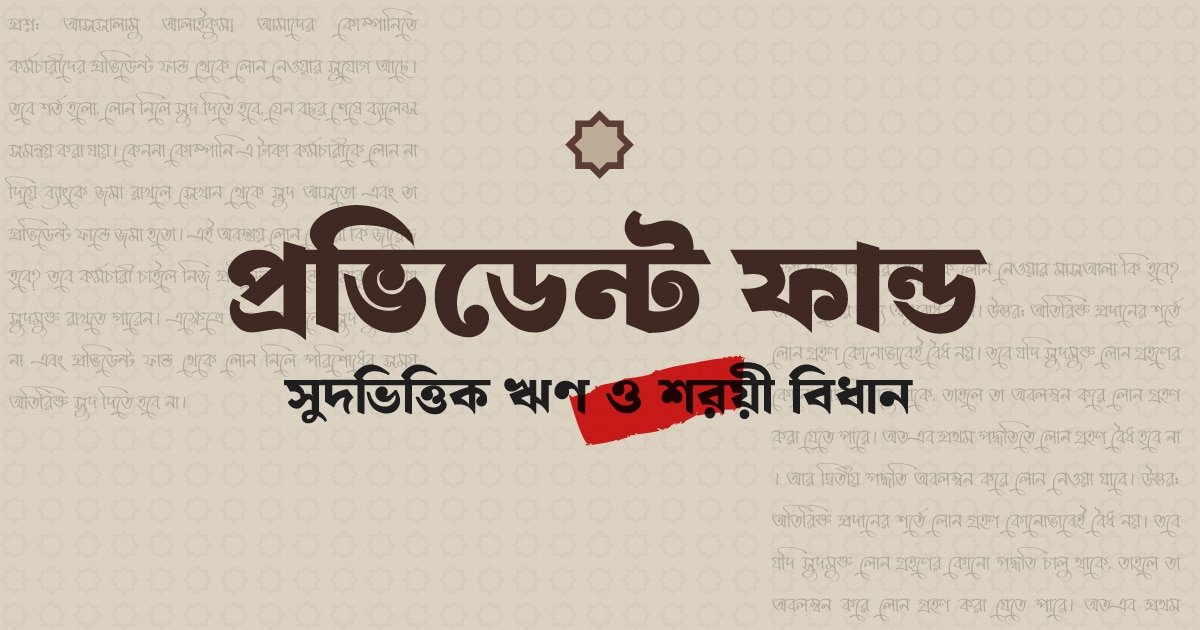 তবে কর্মচারী চাইলে নিজ প্রভিডেন্ট ফান্ডে জমাকৃত টাকা সুদমুক্ত রাখতে পারেন। এক্ষেত্রে তার একাউন্টে সুদ যুক্ত হবে না এবং প্রভিডেন্ট ফান্ড থেকে লোন নিলে পরিশোধের সময় অতিরিক্ত সুদ দিতে হবে না। উপরিউক্ত বিষয়ের আলোকে লোন নেওয়ার মাসআলা কি হবে? তা জানানোর জন্য অনুরোধ রইল।